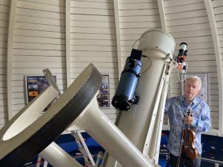 Jaroslav Svěcený na hvězdárně a při přípravě na koncert