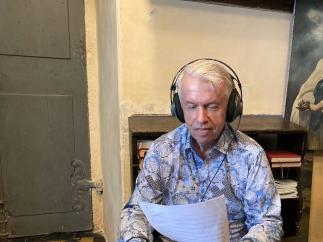 Jaroslav Svěcený na hvězdárně a při přípravě na koncert