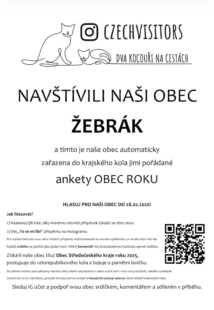 Líbí se vám Žebrák? I my se připojujeme k výzvě k hlasování v anketě Obec roku.
