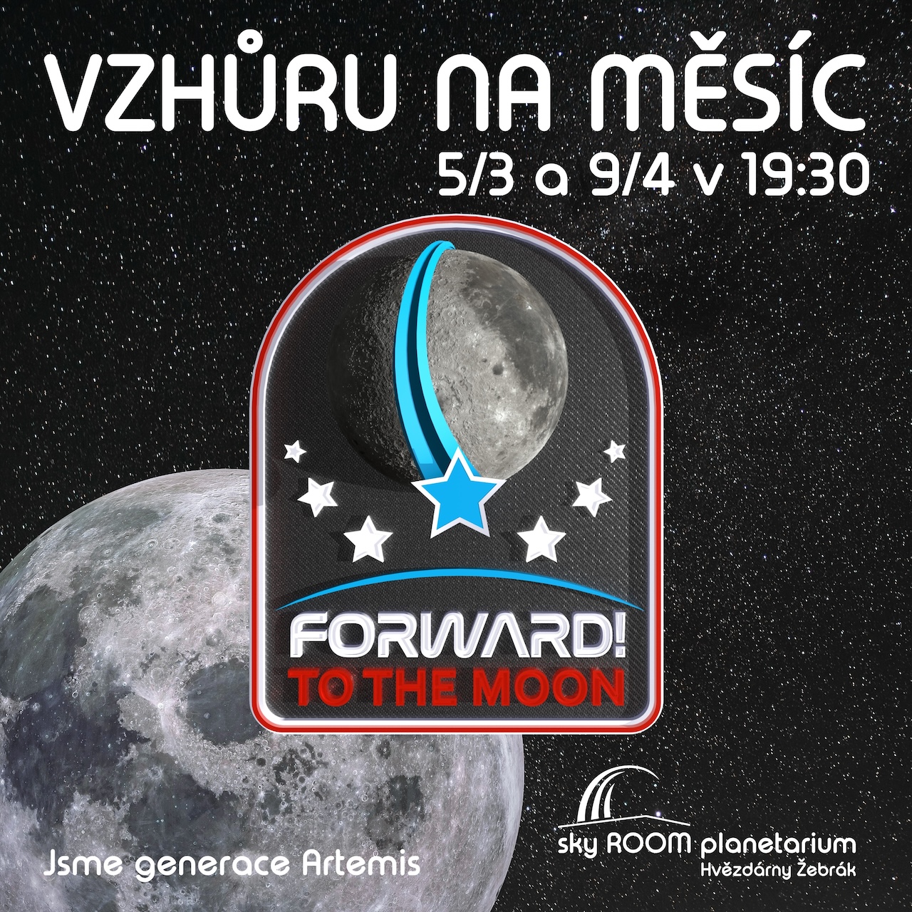 Chystáme pro vás nový pořad do našeho malého planetária v Žebráku. Vzhůru na Měsíc! Vydáme se na cestu za hranice Země směrem k udržitelné budoucnosti ve vesmíru. Program NASA Artemis pro 21. století, pojmenovaný po řecké bohyni Měsíce a dvojčeti Apollóna, je dalším krokem v naší misi prozkoumávat vesmír. Český dabing: Planetárium Ostrava. Už v březnu a dubnu v planetáriu Hvězdárny Žebrák na náměstí.