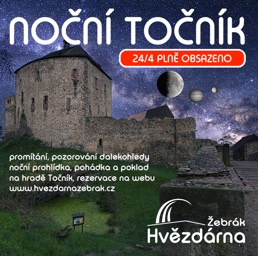 Prohlídka, pozorování, promítání, pohádka, poklad. Přesně takový program nabídne rodinám s dětmi další ročník oblíbené akce Noční Točník, kterou pořádá Hvězdárna Žebrák ve spolupráci s NPÚ. Akce je již plně obsazena, k rezervacím do plného počtu účastníků stačilo několik hodin.